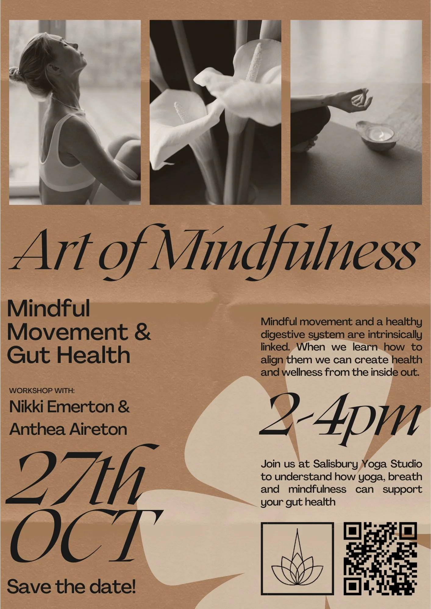 To learn more join us for this very exciting workshop in which you will start to understand how yoga, breath and mindfulness can support your gut health.