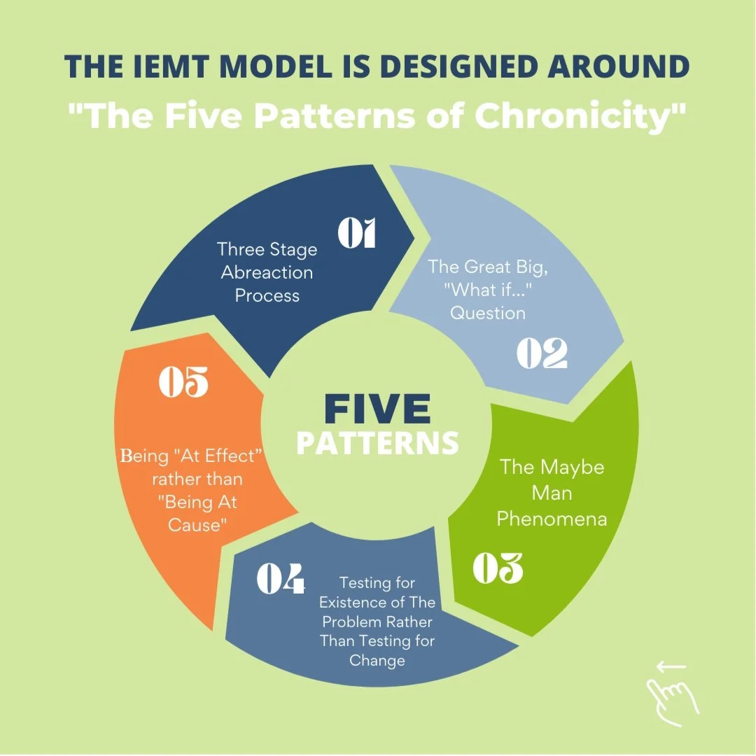 This innovative approach works by addressing the 5 Patterns of Chronicity that keep us stuck in cyclical behaviours and also addresses the body’s automatic responses through techniques such as Psychological State Accessing Cues (PSACs), which help interrupt deeply ingrained emotional reactions before they surface consciously.